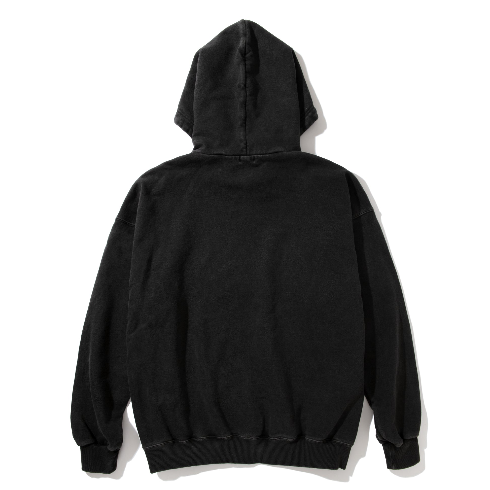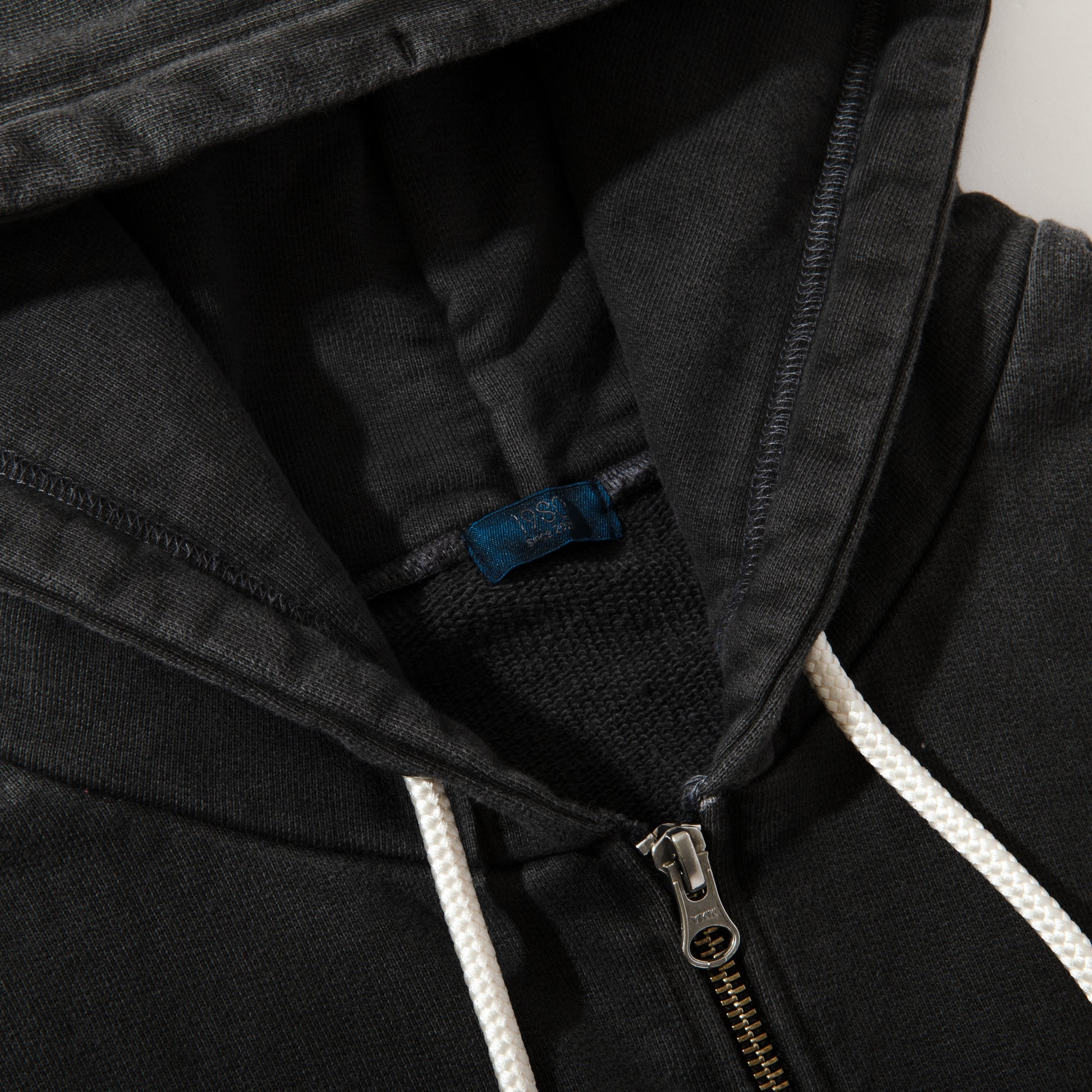 Sun fade加工を施したzip hoodie。