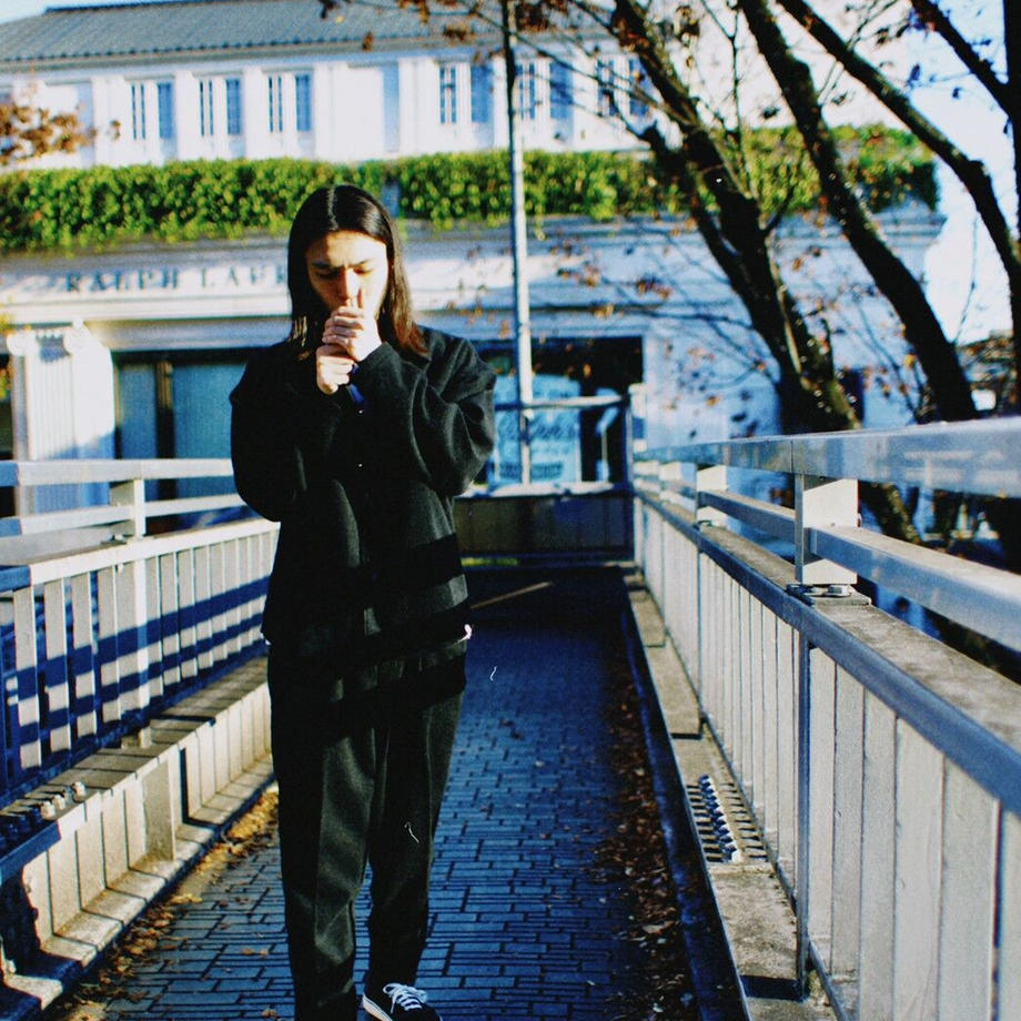 シャツは、大きめのボタンと大きく肩を落とした形が特徴的です。