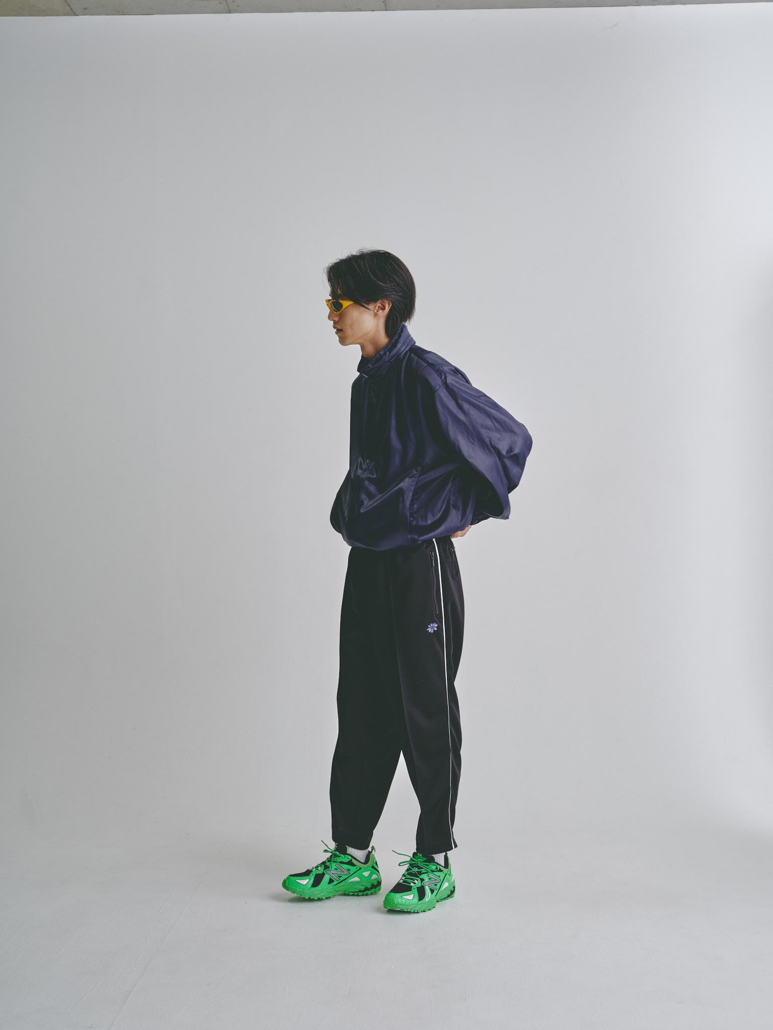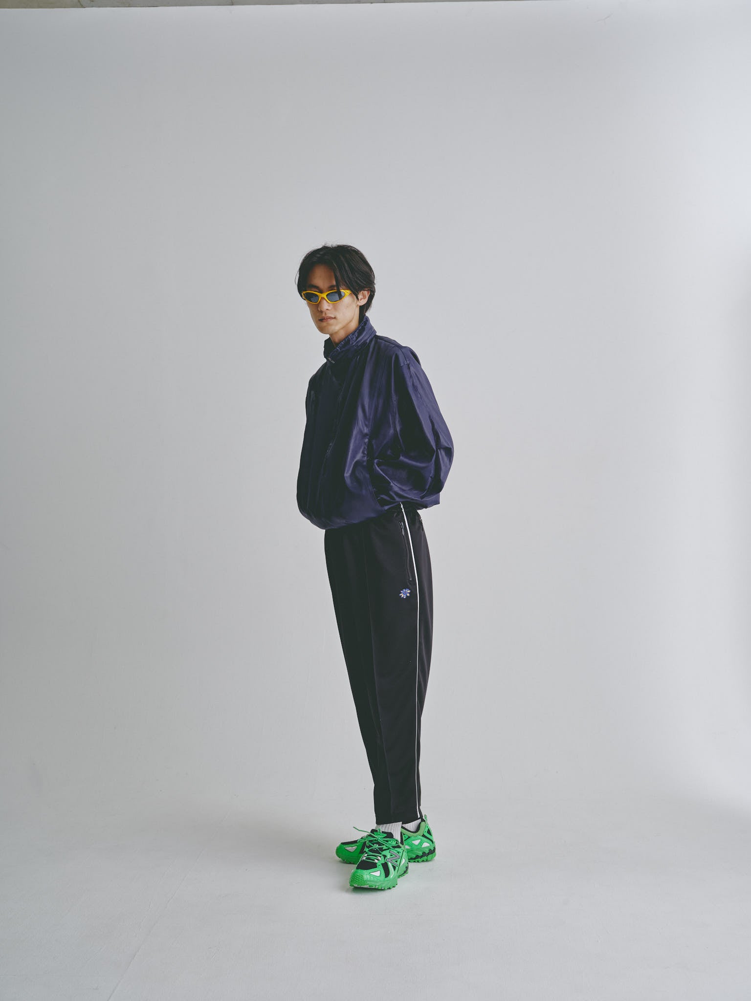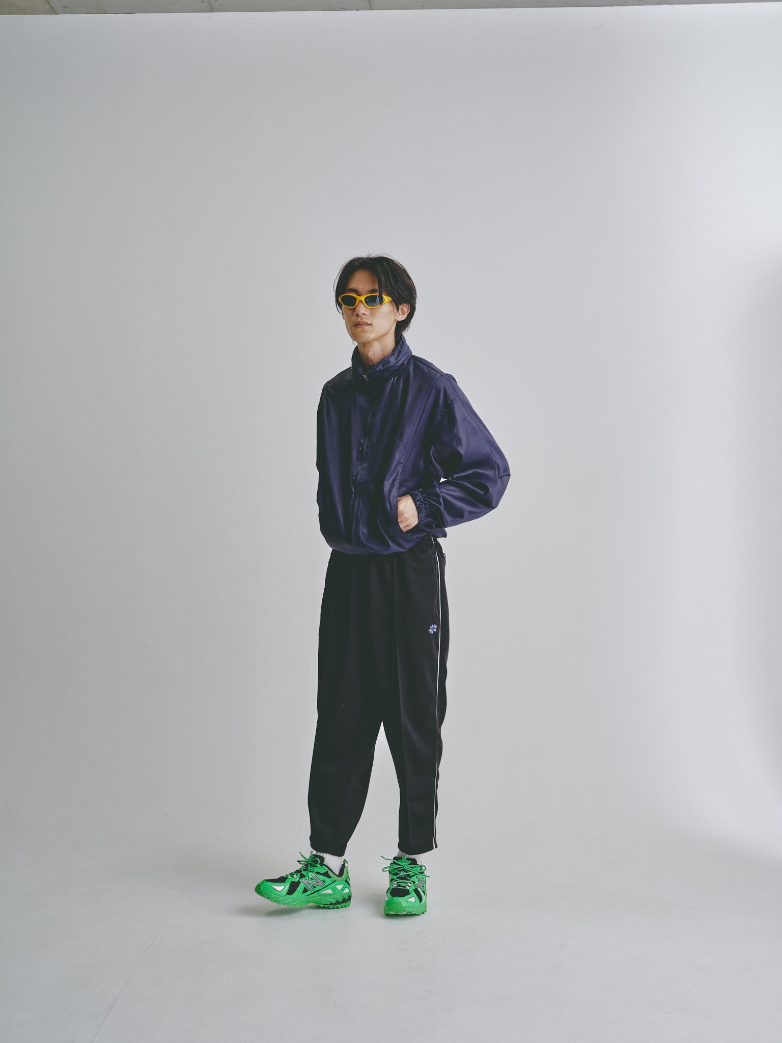 テーパードシルエットで9分丈は変わら無いのですが、素材がジャージータイプになったのでより着こなしの幅が広がります。