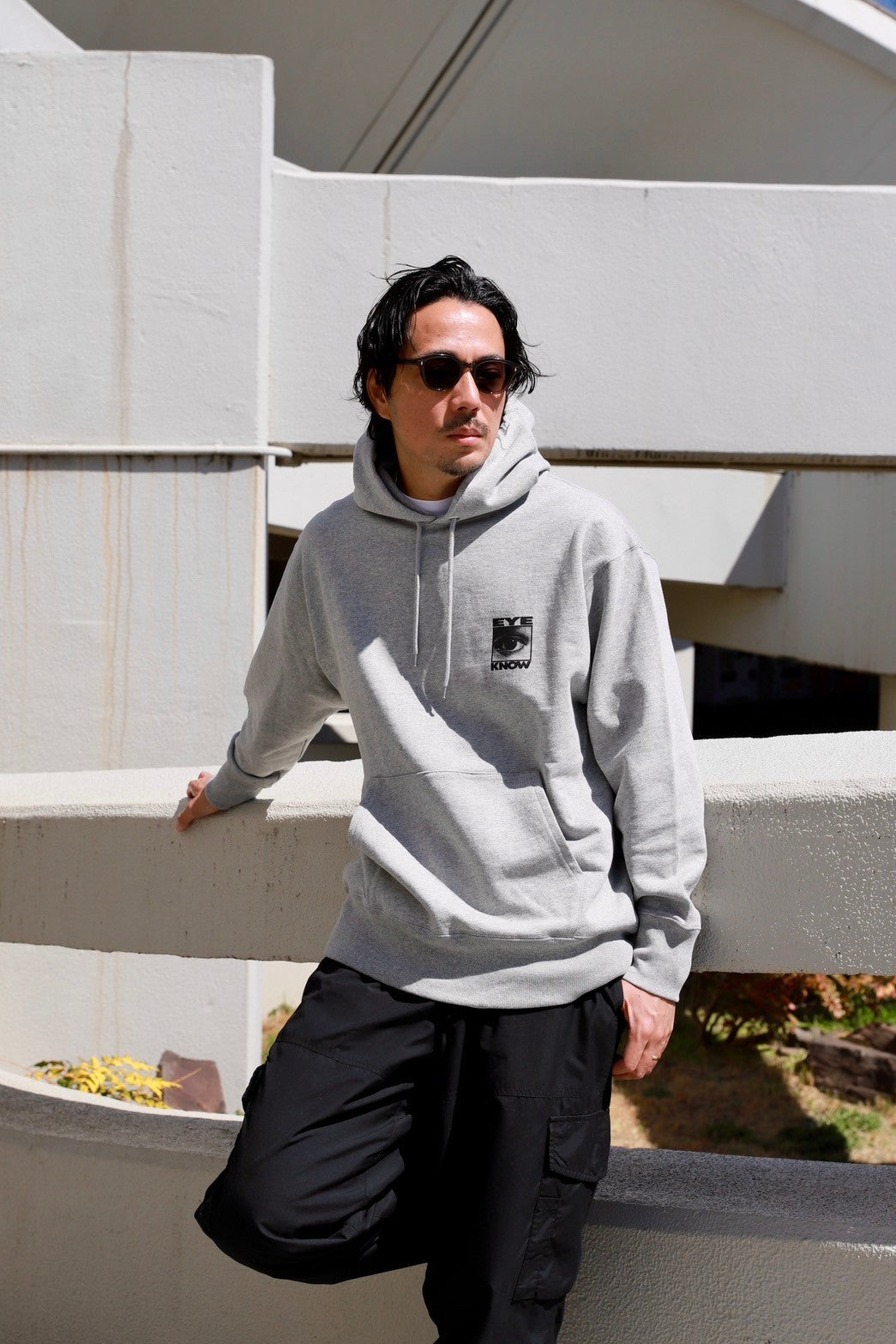 EYE KNOW ロゴをプリントしたフーディー