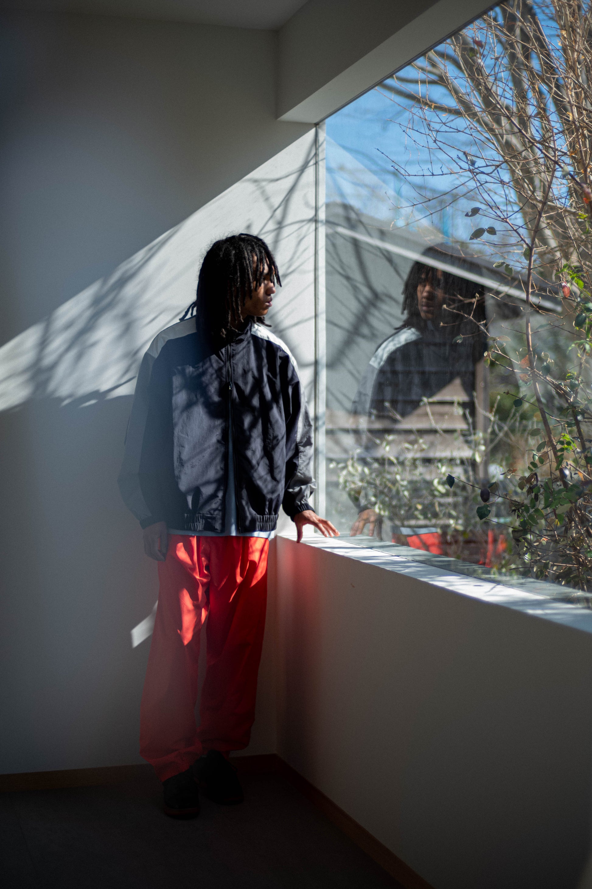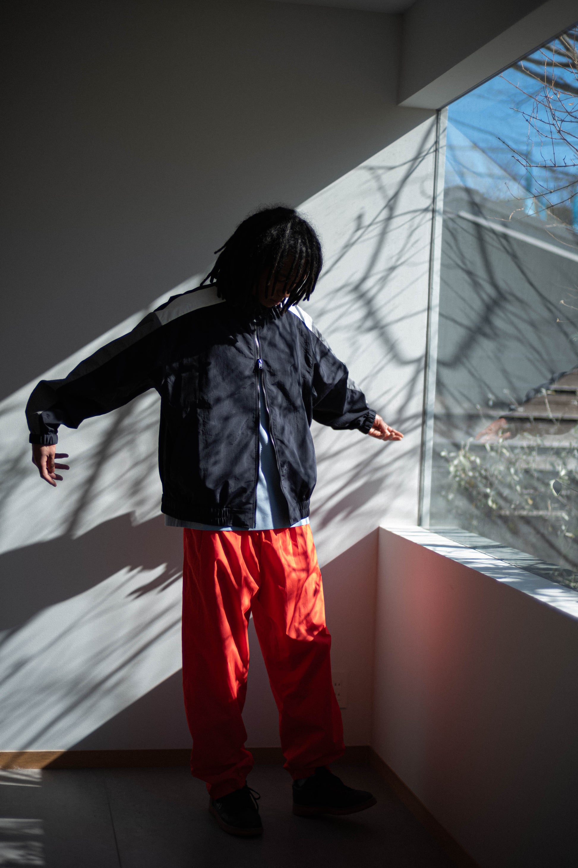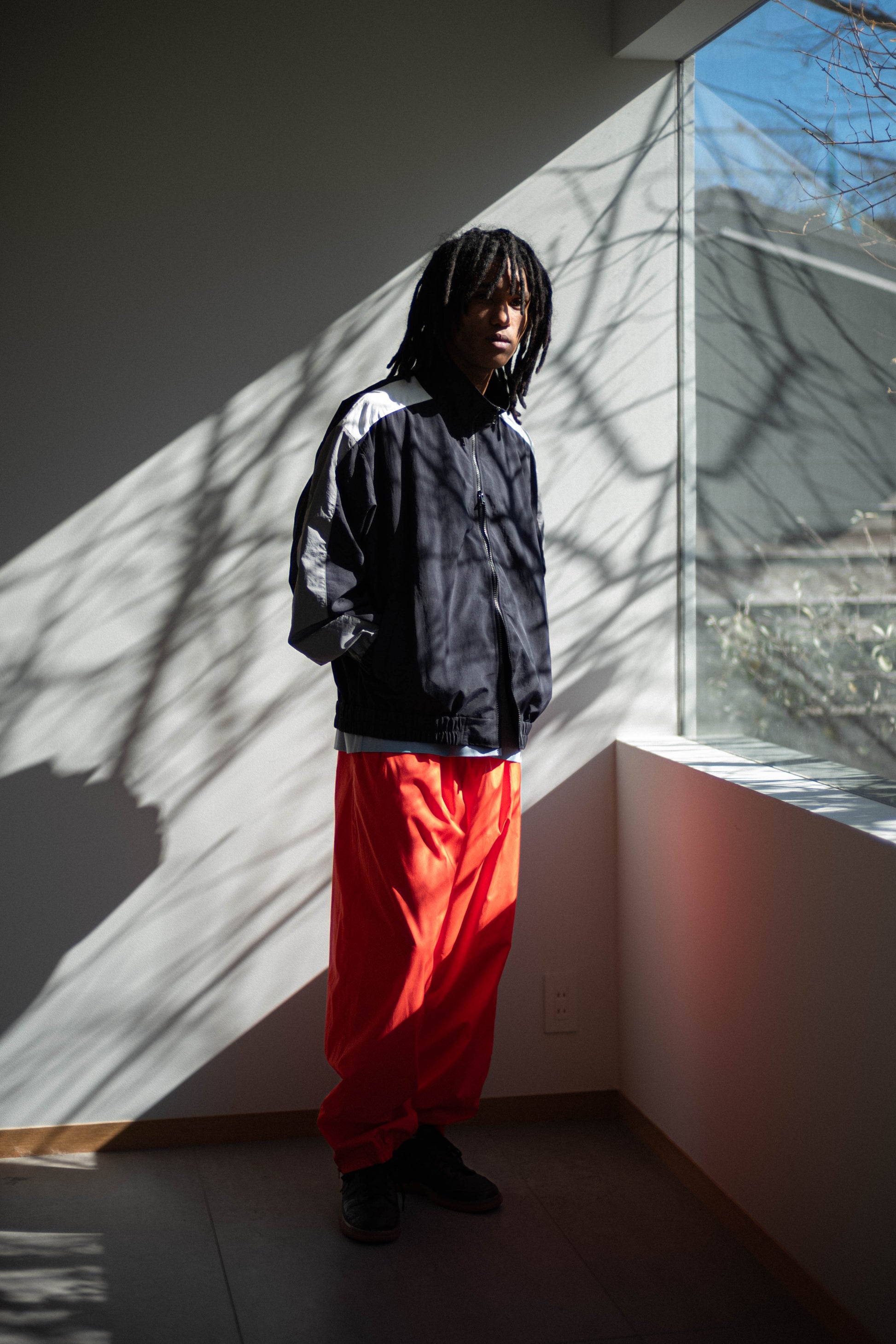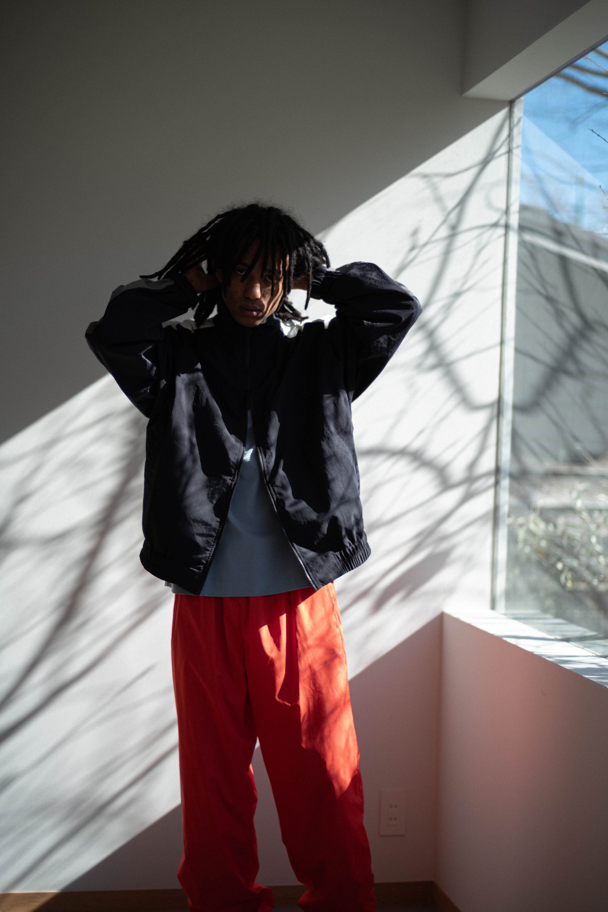 wide nylon pantsとのセットアップでも着用できるトラックジャケットです。